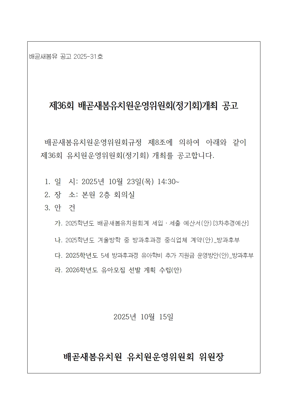[ÀϹÝ] 2025Çг⵵ Á¦36ȸ ¹è°ð»õº½À¯Ä¡¿ø¿î¿µÀ§¿øÈ¸(Á¤±âȸ)°³ÃÖ °ø°í