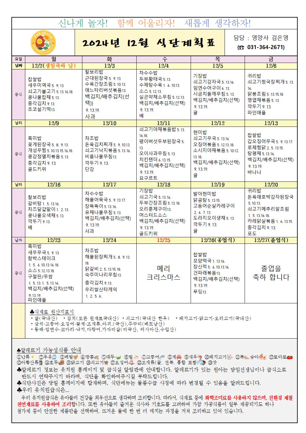 [ÀϹÝ] 12¿ù ½Ä´Ü°èȹǥ ÀÔ´Ï´Ù