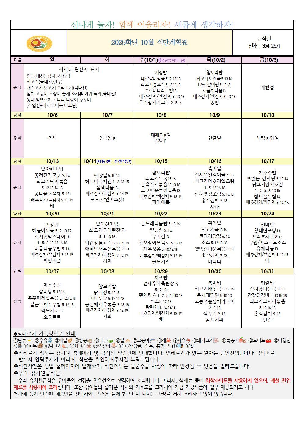 9¿ù29ÀÏ~ 10¿ù2ÀÏ Çб³±Þ½Ä ½ÄÀç·á ¿ø»êÁö ¹× ¿µ¾çÇ¥½ÃÁ¦