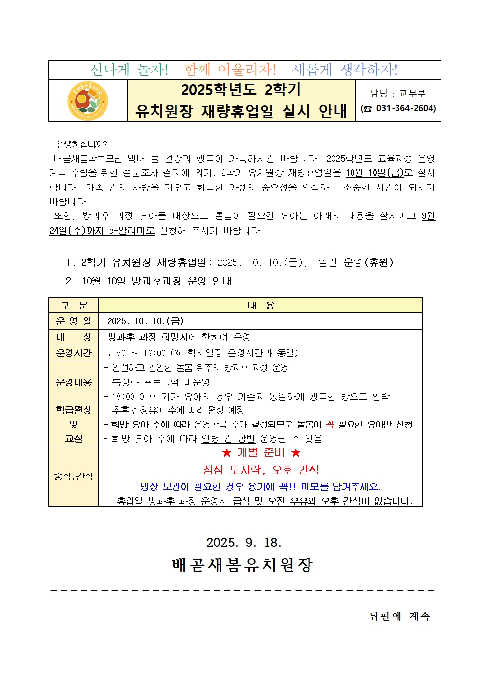[ÀϹÝ] 2025Çг⵵ 2Çбâ À¯Ä¡¿øÀå Àç·®ÈÞ¾÷ÀÏ ½Ç½Ã ¾È³»
