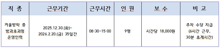 [°ø°í] 2025³â °Ü¿ï¹æÇÐ Áß ¹æ°úÈÄ °úÁ¤ ¿î¿µÀη ä¿ë °ø°í